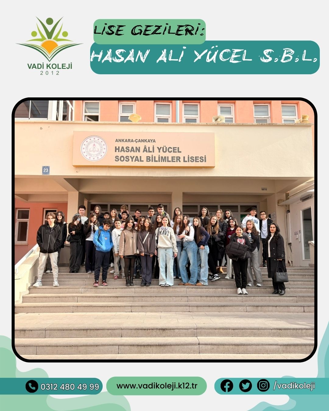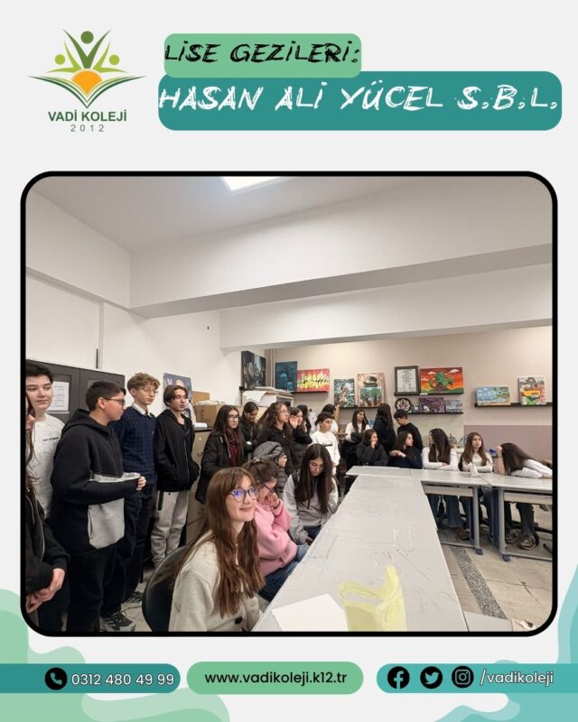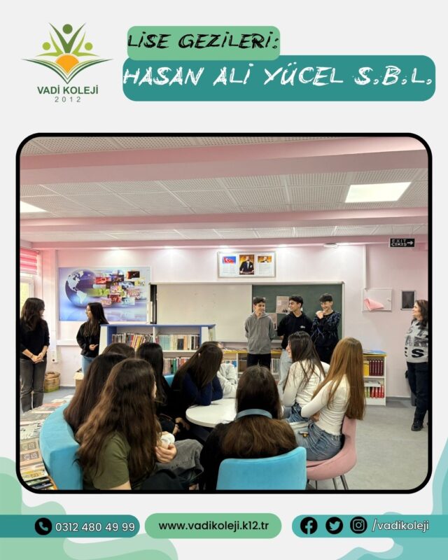 Uncategorized LİSE GEZİLERİ Aralık 25, 2025 Posted by vadi 25 Ara 8.Sınıf öğrencilerimiz Lise tanıtım programı kapsamında Hasan Ali YÜCEL Sosyal Bilimler Lisesi’ni ziyaret etti.
