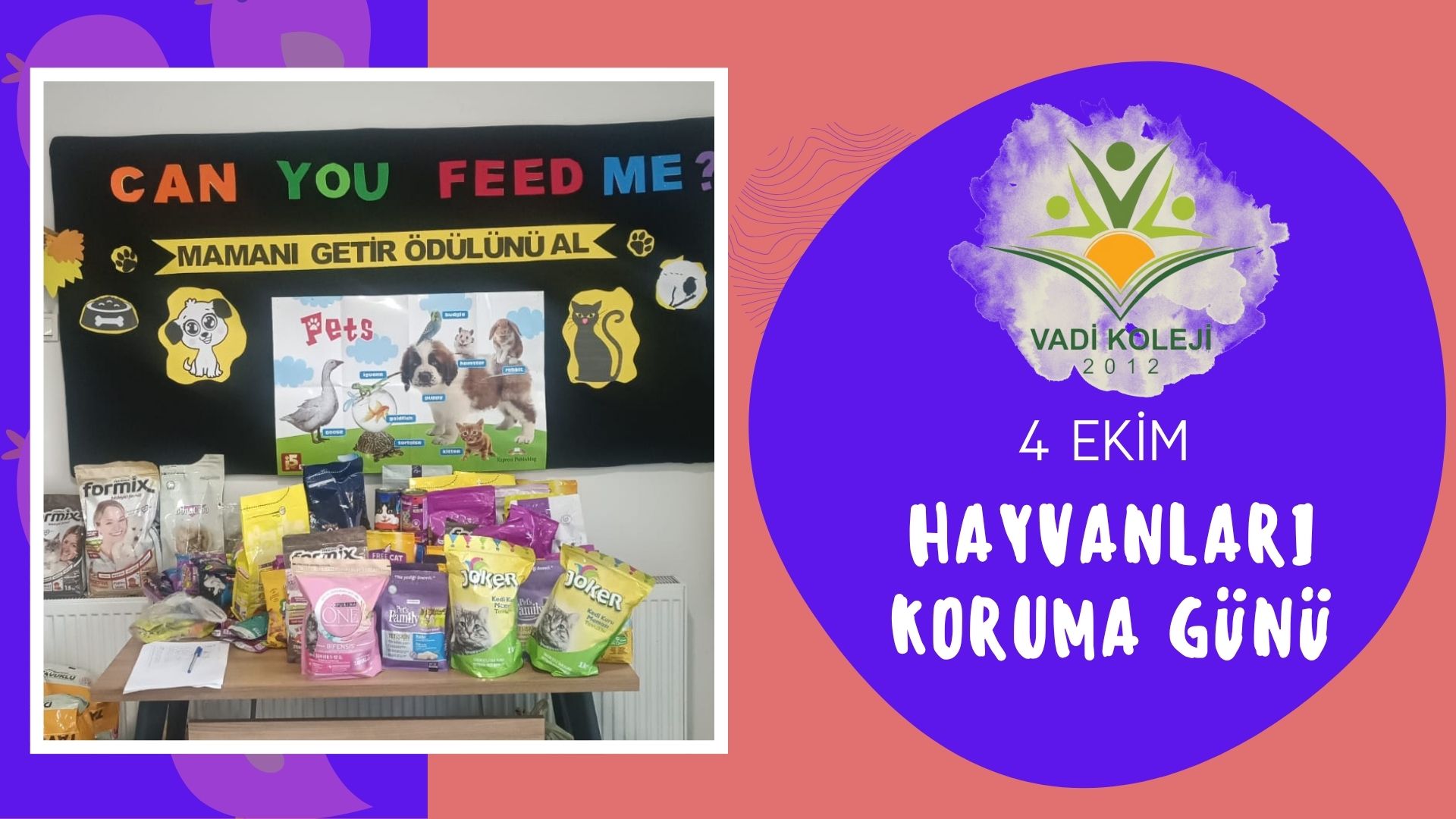 4 Ekim Hayvanları koruma günü kapsamında okulumuzda topladığımız mamaları bu sene Patiliköy Derneği’ne bağışladık. Köpüşlerle hem imkanlarımızı hem sevgimizi paylaştık. Mamaları bizzat teslim eden temsilci öğrencilerimiz patili dostlarımızla sevgi dolu vakit geçirdiler.