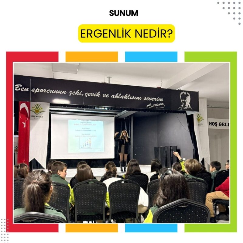 Sunumda ergenlik döneminde yaşanan fiziksel, duygusal ve sosyal değişimler hakkında öğrencilerimizin doğru bilgiler edinmeleri, kendilerini ve yaşadıkları süreci daha iyi tanımaları amaçlanmıştır. Öğrencilerimizin aktif katılım sağladığı, merak ettikleri soruları rahatlıkla sorabildikleri verimli bir çalışma olmuştur.